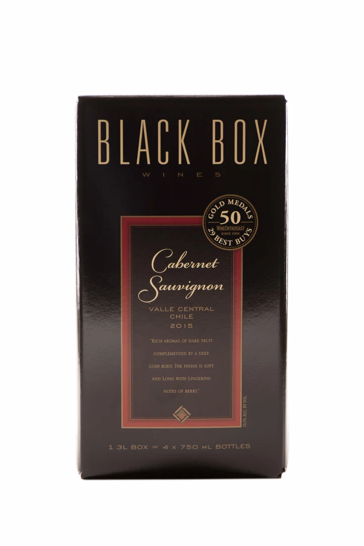 Black Box Wines Cabernet Sauvignon is full-bodied, displaying enticing aromas of black currant, toasty oak, and a hint of vanilla. Ripe blackberries and chocolate fill the palate with balanced tannins that lead to a soft, lingering finish.